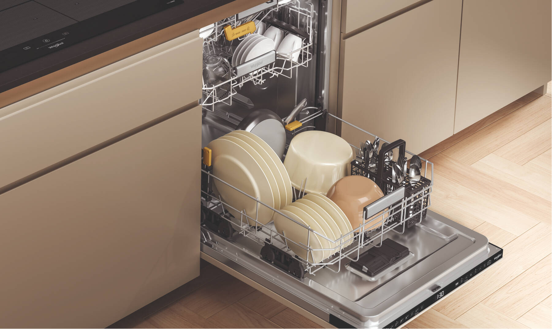 *Comparație între modelele de mașini de spălat vase Whirlpool care au cuvă standard și modelele de mașini de spălat vase Whirlpool care au cuvă MaxiSpace. Spațiul suplimentar se referă la suprafața totală de încărcare pe cele trei rafturi.Cu noua mașină de spălat vase MaxiSpace beneficiezi de mai mult spațiu pentru încărcarea vaselor.