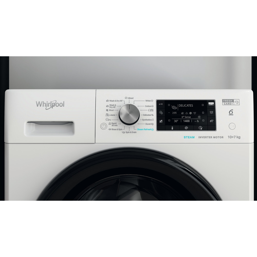 Specificatii masina de spalat rufe cu uscator independenta: culoare alb. Capacitate sporita de pana la 10,0 kg. Capacitate sporita de pana la 7,0 kg. Tehnologia Al 6-lea Simt monitorizeaza constant resursele necesare spalarii. Eficienta cu 1600 rpm.
