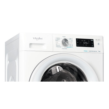 Specificatii masina de spalat rufe independenta Whirlpool: culoare alb. Capacitate de pana la 7,0 kg. Clasa energetica A. Eficienta cu 1400 rpm. Tehnologia Al 6-lea Simt, adapteaza in functie de incarcatura resursele necesare.