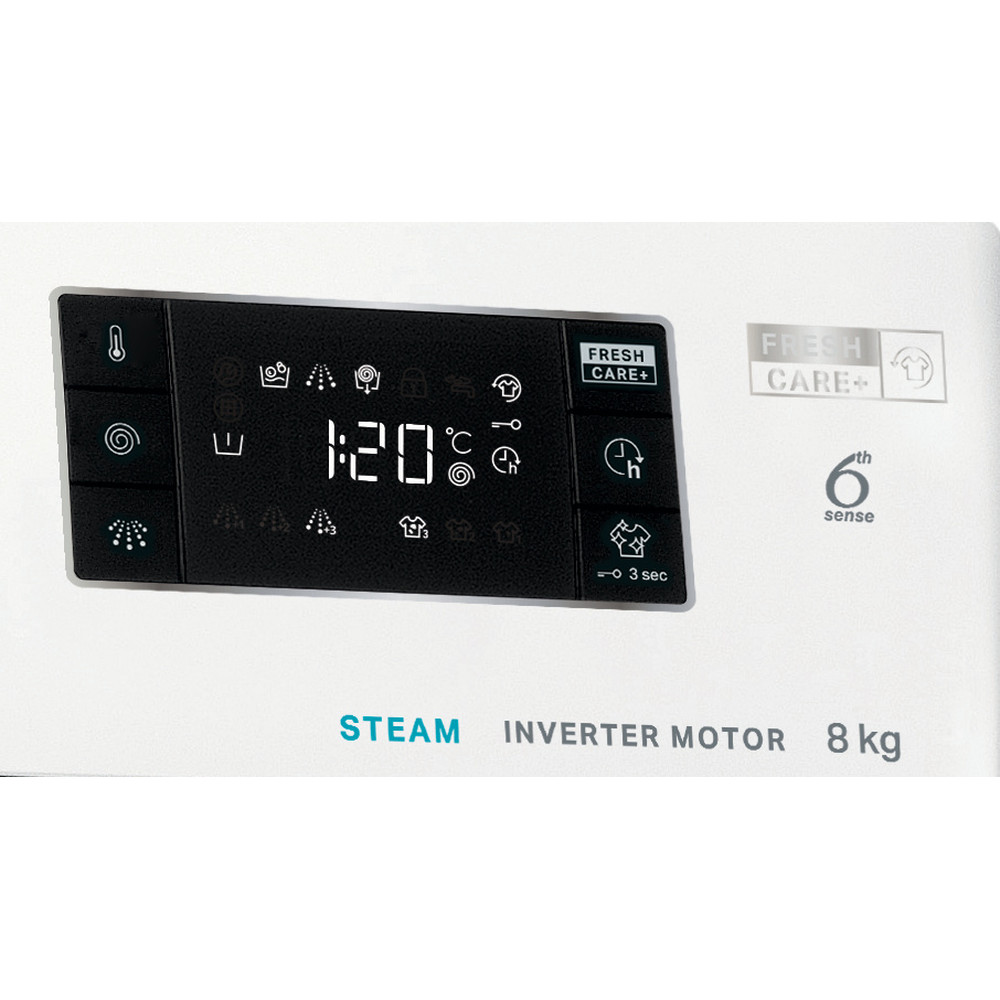 Specificatii masina de spalat rufe independenta Whirlpool: culoare alb. Capacitate de pana la 8,0 kg. Clasa energetica B. Eficienta cu 1200 rpm. Tehnologia Al 6-lea Simt, adapteaza in functie de incarcatura resursele necesare.