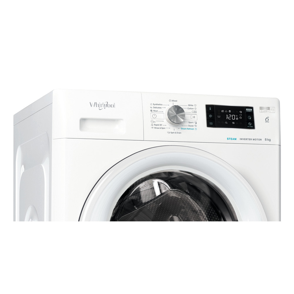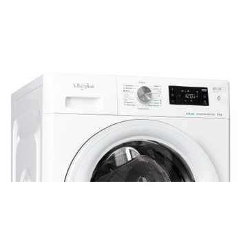 Specificatii masina de spalat rufe independenta Whirlpool: culoare alb. Capacitate de pana la 8,0 kg. Clasa energetica A. Eficienta cu 1400 rpm. Tehnologia Al 6-lea Simt, adapteaza in functie de incarcatura resursele necesare.